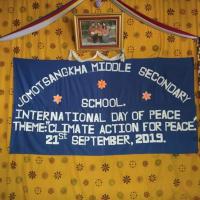 On 21st September 2019, Jomotsangkha Middle Secondary School celebrated the "International Day of Peace". This year the theme was "Climate Action for Peace". The scout leaders and thd scout commissioner talked on the importance of the day such as climate change, global warming, green house etc...After that we have presented some of the pledges on this important day. Even we have talked on the importance of Jangsem Monday. We have planted the trees and inspected the gadgets created by the scout member. The day ended with the refreshment.