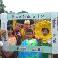 Then, pre-primary kids staged a skit on the theme. Dressed animated cartoon of trees, river and earth, the kids warned every one of the greedy human, who destroys the earth every day. The audience were silenced by the enactments of the kids with powerful message.