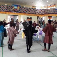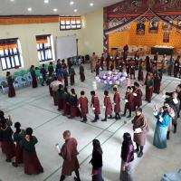 The Principal, teachers and scouts representatives took part in lighting the butterlamps, arranged beautifully depicting the number 39, the King's age after that the National Anthem followed by Zhabten.