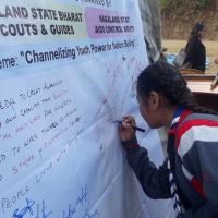 National Youth Day was celebrated at Nagaland State Bharat Scouts and Guides State Training Centre, Nerhema Kohima with 110 Scouts, Guides, Rovers, Rangers and Adult Leaders. The celebration was jointly organised with the Nagaland State AIDS control Society under the theme "Chanelizing Youth Power for Nation Building." The participants were sensitized on HIV & AIDS awareness and took pledge to spread the awarewness and work towards elimination of stigma and discrimination.The Chief Medical officer of Naga Civil Hospital was the main guest speaker. The Participants also signed pledge to work for the spread of awareness and eliminate discrimation towards people living with HIV and AIDS.