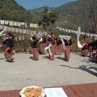 Monmola PS family joined the nation in celebrating the 41st Birth Anniversary of our Druk Gyalpo on 21st Feb, 2021. The programme commenced at 8:30 am with the offering of 108 butter lamps, singing of zhabten and national Anthem. The Principal shared the importance of the celebration with the highlights on the significant developmental activities and reforms brought by our Druk Gyalpo. The scouts and the senior students showcased a series of cultural/ entertainment programme to the guest. All the teachers, NFEIs , ECCDFs, support staff and few students' parents took part in this important celebration. The scout members took the lead role in full preparation and managment of this particular celebration as it was also marked as the Scout Day. The programme finally concluded with the short prayers and offering of long life wishes to our King.
