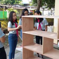Besides from the renovating and establishing a Reading Center, the Scouts also took time painting bulletin boards, bookshelves, chairs, tables, as well as helping teachers in their tasks during the Brigada Eskwela. Throughout this week, the team also interacted with the students and faculty DAES as they also do their respective tasks during the Brigada Eskwela.