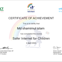 this is to certify that md shamimul islam has completed the course safer Internet for children.