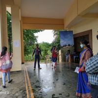 We reached the examination center at 8:00 am. We reported to our RSL and they provided thermal scanner and Sanitizer. Whenever the student entered the examination center we did the thermal scanning of each student and sanitised them. Also we helped the students to find their room in order to write exam. At the time of 2:00pm we were done with our duty and returned home.
