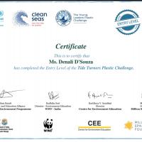 I had undergone Plastic Tide Turners Challenge where I successfully completed the Entry level.