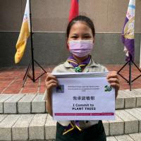 2.童軍、行義、服務員及家長們用宣言字卡拍照打卡上傳活動。