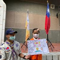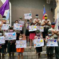 利用團集會的時間,地點在宜蘭縣政府,參與中華民國童軍2021年國際和平日的慶祝活動:
