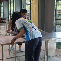 ทำความสะอาดและฆ่าเชื้อพื้นผิวต่างๆ อย่างสม่ำเสมอ โดยเฉพาะอย่างยิ่งพื้นผิวที่ต้องสัมผัสกับอาหารและพื้นผิวที่ต้องมีการสัมผัสอยู่เสมอ เช่น ก๊อกน้ำ มือจับ โทรศัพท์ ปุ่มกดต่างๆ