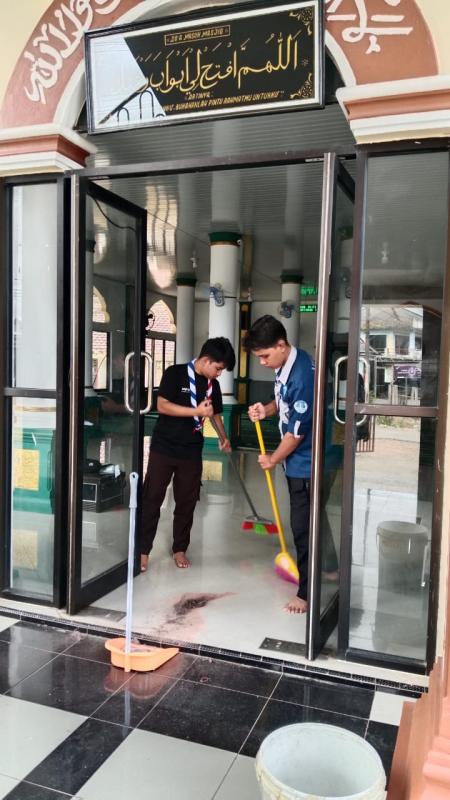 Bangka Belitung University Scouts initiated a work program for the month of Ramadhan, to clean the mosque, because the mosque is the most crucial place of worship in Balun Ijuk village