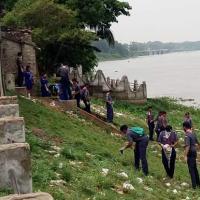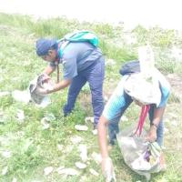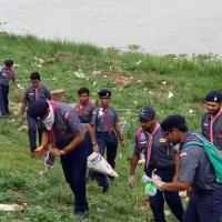 A team of 34 scouts, guides, rovers and rangers render service to clean the bank of holy river ganga at Ichapur, west bengal state in India. On 5th June, 2019 morning the team organise a rally in the locality with posters, slogans, band and gathered at the pre decided spot with gloves, masks, bin bags, posters and after dividing small groups they started their service under the leadership of their patrol leaders. The bank of river Ganga between two bathing ghats was totaly covered with plastic and other garbages. Being personally protected themselves with masks, gloves, caps, they collected the garbages in different bin bags and carry them to nearby municipal garbage bin. Moreover they plant some saplings there to beautify the place and also fix some posters to aware people about environment. The local municipal authority praise them for their services.