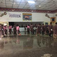 Led by the head of the administration and 3 teachers, a total of 90 students volunteers to clean and wash the Multipurpose hall and the furniture. The main reason was to arrange and prepare a clean hall for the students to write their final examination so that with better concentration they can perform better.