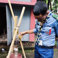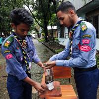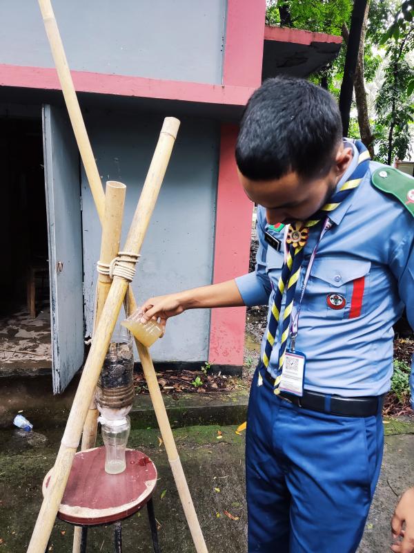 First of all, through the exchange of ideas with the members of our unit, we agreed to make a sewage treatment and sustainable natural filtering system in our campus area. And with everyone's help, we build filtering systems and create posters and public awareness about safe drinking water, prevention of water wastage and sanitation.