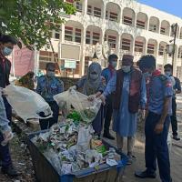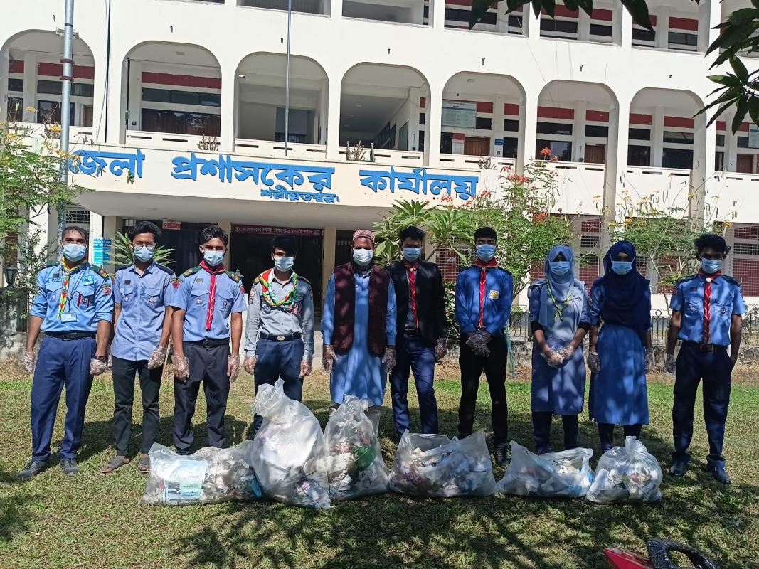 We clean the trash, plastic thrown by people at Shariatpur district commissioner's office. We clean all that plastic bottle, poly bag, other harmful materials which are harmful for the environment.
