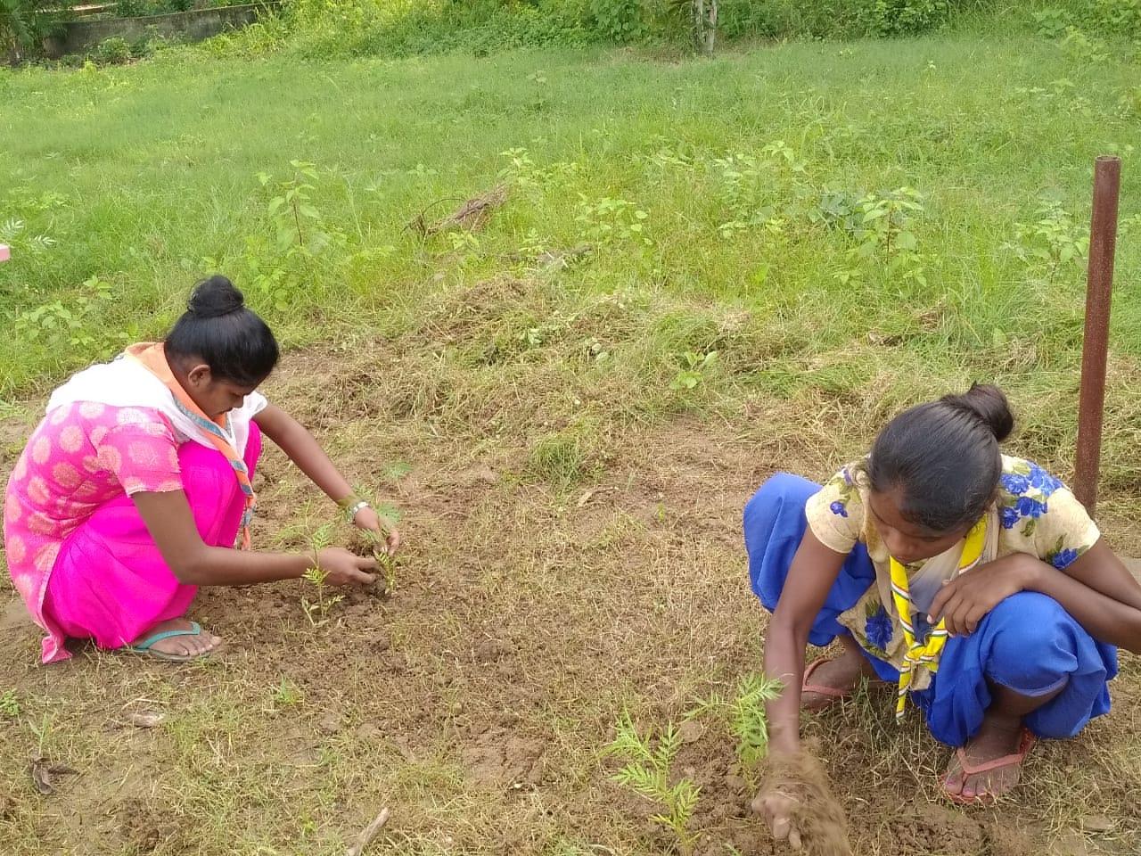 The Rangers of Bargaon ITI Group of Odisha State Bharat Scouts and Guides, cleaning the advanture base site of State Training Center Bargaon ITI.