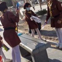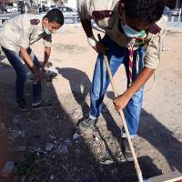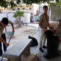 Cleaning the public garden of Tobruk city in Libya