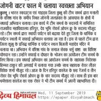 टीम समर्थ द्वारा मनाली के जोगनी वाटर फॉल में चलाया गया स्वच्छता अभियान।