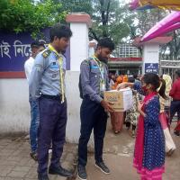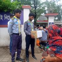 2024 AD Heavy rainfall occurs during July-August. Which is the third highest in the record of 122 years. All the water of this rainfall in India enters Sylhet, Feni, Comilla region of Bangladesh and floats away. Many people in the region became housebound. They do not get anything to eat, not even safe water. So Rajshahi District Rover and College Scout Group jointly undertook a relief collection program to help the flood victims.