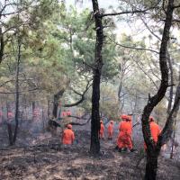 The Royal Palace is located above forest fire area. People from nearby village, forest officials and other volunteers came forward to combat forest fire. After four hours, we could contain the forest fire.