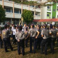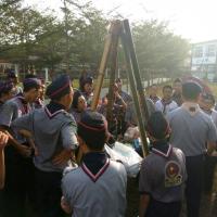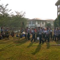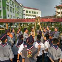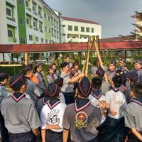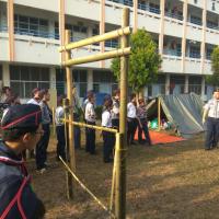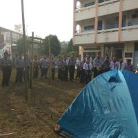 San Min Secondary School corporates with San Min High School organised a camp for both troop members to have a chance to take their exam and get their badge. They learn some knot skill, backwood's cooking, marching, expedition, building gadgets, first aid, and etc.