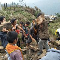 cubs of chungkha primary school rendered service in constructing Mr. Jambays house.