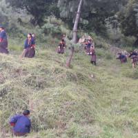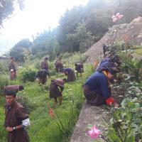 146 scouts (12 scout leaders and 134 scout) did grass cutting and maintenance of flower garden around HE Jamyang Kyentse Rinpoche's palace (Scout adoption place) after the school hours.