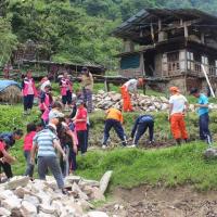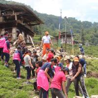 32 scouts from class 9 and 11, 5 community based scouts and 5 scout leaders spent the whole day at the construction site at Panikong, where Gasa Dzongkhag is coordinating the house construction for a Royal Kidu recipient.