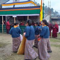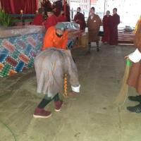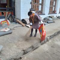 I along with my scout friend helped to clean the Chador Lhakhang during the sermon given by Dzongsar Jamyang Khentshe Rinpoche to the people .