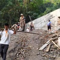 On 24/03/2019,we went to help at the site of construction at Sangye Migyur Ling Lhakhang located at phuntsholing. we carried metal pipes and planks from down valley to up at lhakhang which took more than half an hour to go back and fro.