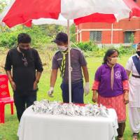 very difficult days when not only the Scouts had to face threatening of Corona looming over hungry and poor but also the curse of cyclone Ampan. Ampan did havoc all around Santragachi, breaking trees, blocking roads, supplies and destroying small huts all around especially the adjacent slums. Today the need to stand beside the needy has become more important as many people who had a shelter to hide till yesterday are standing under open sky without any resources. Our Scouts therefore, came out with more determination and efforts to support everyone. Because of the infrastructural damages and disruption in power and water supplies. we could not cook and provide cooked food to all. But our dedicated volunteers defied all odds and provided dry foods like breads and Laddu to every needy person and families affected both by Corona lockdown and Cyclone Ampan. More power to Scouts, more power to solidarity.