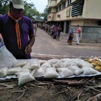 very difficult days when not only the Scouts had to face threatening of Corona looming over hungry and poor but also the curse of cyclone Ampan. Ampan did havoc all around Santragachi, breaking trees, blocking roads, supplies and destroying small huts all around especially the adjacent slums. Today the need to stand beside the needy has become more important as many people who had a shelter to hide till yesterday are standing under open sky without any resources. Our Scouts therefore, came out with more determination and efforts to support everyone. Because of the infrastructural damages and disruption in power and water supplies. we could not cook and provide cooked food to all. But our dedicated volunteers defied all odds and provided dry foods like breads and Laddu to every needy person and families affected both by Corona lockdown and Cyclone Ampan. More power to Scouts, more power to solidarity.