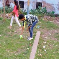 the members of Titumir scouts and guide group cleaning the surrounding areas of group den