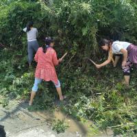 Scouts, Community based scouting members and staff volunteers decided to maintain farm road which was badly damaged by heavy rain. Filled up potholes and cleared bushes beside road.