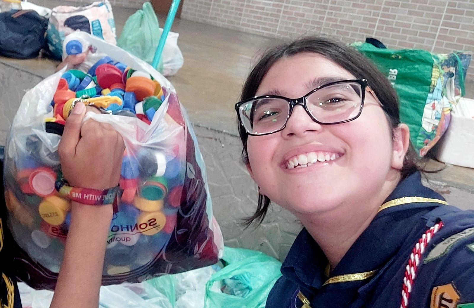 Eu aprendi que com a coleta de tampinhas livramos um pouco do excesso de plástico da sociedade,destinado a uma coisa melhor do que só poluir mais o meio ambiente e sim beneficiando instituições.
