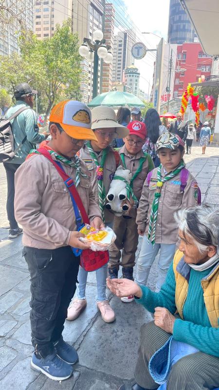 La primera parte fue la recaudación de fondos, en la que los lobatos realizaron carteles informativos y se reunieron en una plaza a vender hot dogs, refrescos y distintos postres que cada uno llevó, además de contar con latas de donaciones. Con el dinero recolectado, se preparó 50 platos de "Saice" y se compraron jugos individuales para posteriormente ir a repartirlos por el centro de la ciudad de La Paz, haciendo grupos y conversando con las personas a las que se entregaban los platos.