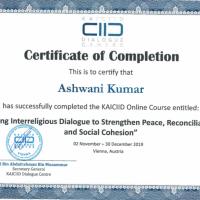 I completed the KAICIID online Course entitled “Using Interreligious Dialogue to Strengthen Peace, Reconciliation and Social Cohesion”.