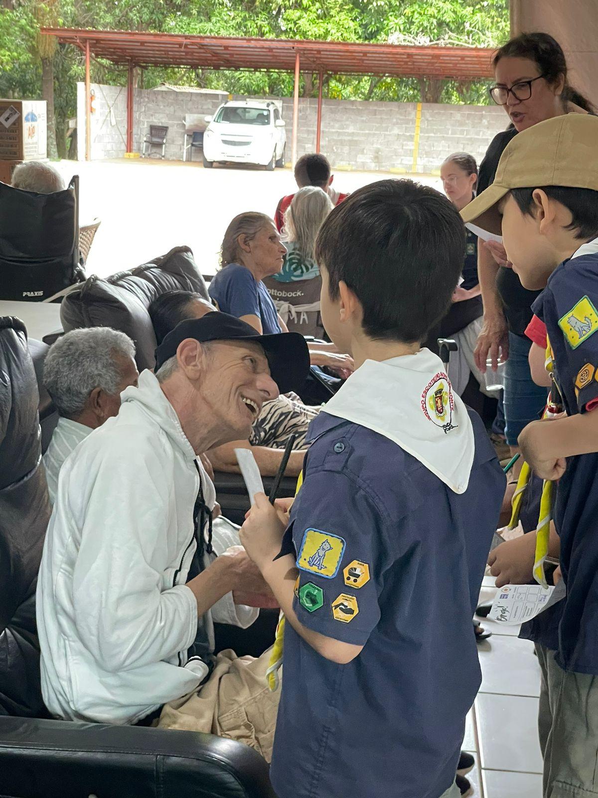 Minha bisavó ficou em um asilo, e com a atividade do MUTCOM que tem anualmente, fiquei responsável a organizar, então decidi conectar o asilo com o escoteiro