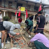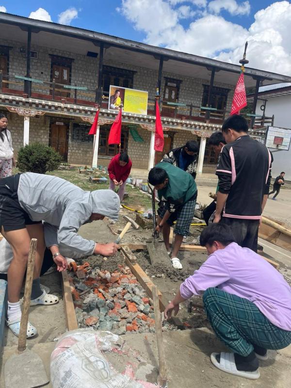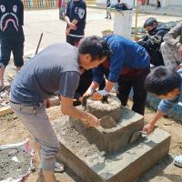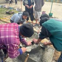 We class IX students along with scout leaders worked together to construct the flag pole stand for scout flag. We worked two weekends to complete that project.