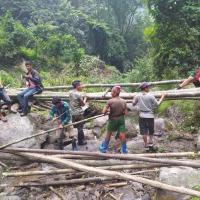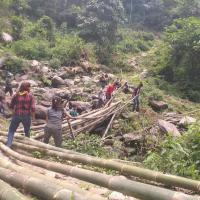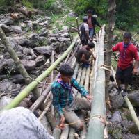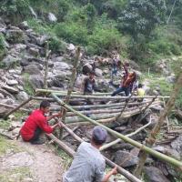 CBS of Gawaling lead a project on "construction of bridge" in collaboration with communities. On 12th May, 2019, temporary bridge was constructed using bambo over a stream though it get dried up in winter, but it get swollen up during summer season and leading people to face difficulties. The stream usually stops people to travel during monsoon season. However, communities doesn't face problem during winter season. The reason for constructing temporary bridge is, to serve the commmunties and keep everyone connected despite the harsh monsoon season.