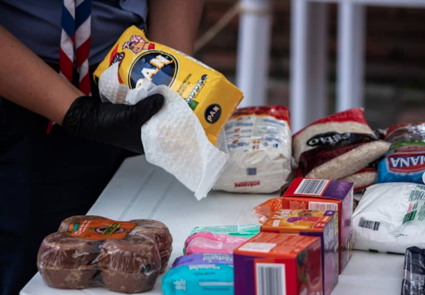 Entrega a la comunidad de las donaciones.