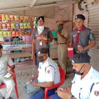 Tibbi kasbe ke shri siddhi vinayak shikshan sansthan ke scout group ke dawara duty kar rahe corona variyars ke liye chaye- naste ki vyavastha ki gai.