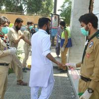 An awareness campaign, to educate the general public regarding the Coronavirus (COVID-19) pandemic, has been launched at bus stops and railway stations by a Sindh Boy Scouts Association in Karachi, Pakistan. We are letting people know the precautionary measures to be taken and the way to use masks. We are making people aware about the symptoms of COVID-19 such as cold, dry cough, breathing problem, headache. This campaign was continued for two days and our motto was to educate the public and ensure that they are protected from coronavirus.