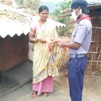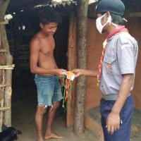 Maa Hira Neela Higher Secondary School Biswanathpur Kalahandi Odisha Rover Crew on 19.04.2020( Friday) underlined the need to create awareness among the people preventing measures of COVID-19. The people should avoid visiting public places like market and must wear face masks. If masks are not available ,they can also used the hand kerchief or cloths to contain the spread of the virus. Mask ,sanitizer and soap were distributed to the people.