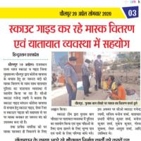 Rajasthan State Bharat Scouts and Guides State Organization supported the distribution of Mask in various districts during the time of Corona epidemic and worked shoulder to shoulder with the administration in special cooperation in providing Mask to the common citizens. State Chief Commissioner Rajasthan state is doing the above work under the leadership of Shri J.C. Mohanty Sir.