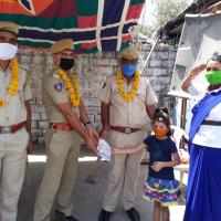 अपनी जान की परवाह किए बिना व परिजनों से दूर रहकर देश के लोगों को कोरोना महामारी से बचाने के लिए 24 घंटे सेवा कर रहे कोरोना योद्धाओं को माला पहनाकर स्वागत किया। सड़को पर मुख्य पोनंटो पर खड़े पुलिस जवानों ओर उनका सहयोग कर रहे लोगो का माला पहनाकर गर्मजोशी के साथ स्वागत कर उनके जज्बे को सलाम किया।साथ उनका आभार भी जताया कि उन्होंने इस मुशीबत की घड़ी में बिना डगे अपना कर्तव्य निभाया।साथ आमजन की मुशीबतों में सहयोग भी दिया। लॉक डाउन में वार्ड के लोगो मदद करने पर इस दौरान पार्वती दाधिच व जितेंद्र दाधिच प्रियंका दाधिच भी इस कार्य मे सहयोग किया।