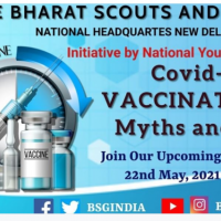 The Bharat Scouts and Guides, National Headquarters, New Delhi with the initiative by National Youth Committee webinar on Covid-19 Vaccinations : Myths and Facts was held on 22.05.2021 at 5.00 pm. The webinar provided a clear and actionable guidance for safe operations through the prevention, early detection and control of COVID-19 in the society. The information and facts about COVID-19 vaccine has helped to diminish our fears and anxieties around the disease and support our ability to cope with any secondary impacts in our lives. The guidance from the esteemed speakers has provided key messages and considerations for engaging safe and healthy society.