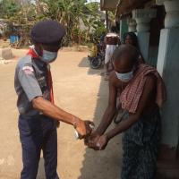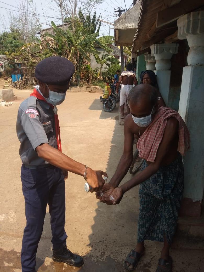 COVID -19.Awareness Programme. Social distance maintain. Hand wash with soap and mask distribution. H.W.B open unit Rovers participated in the programme. Venue..Sagarguan bolagarh khordha