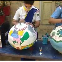 COVIDE- 19 AWARENESS PAINTING ON A POT ON EARTH DAY