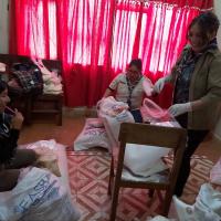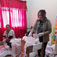 Se realizó la dotación de paquetes familiares que contenían aceite, arroz, azúcar, fideo, harina, sal, cocoa, te, café, ajo, fósforo, papel higiénico, pipocas, atún, jabón, etc.