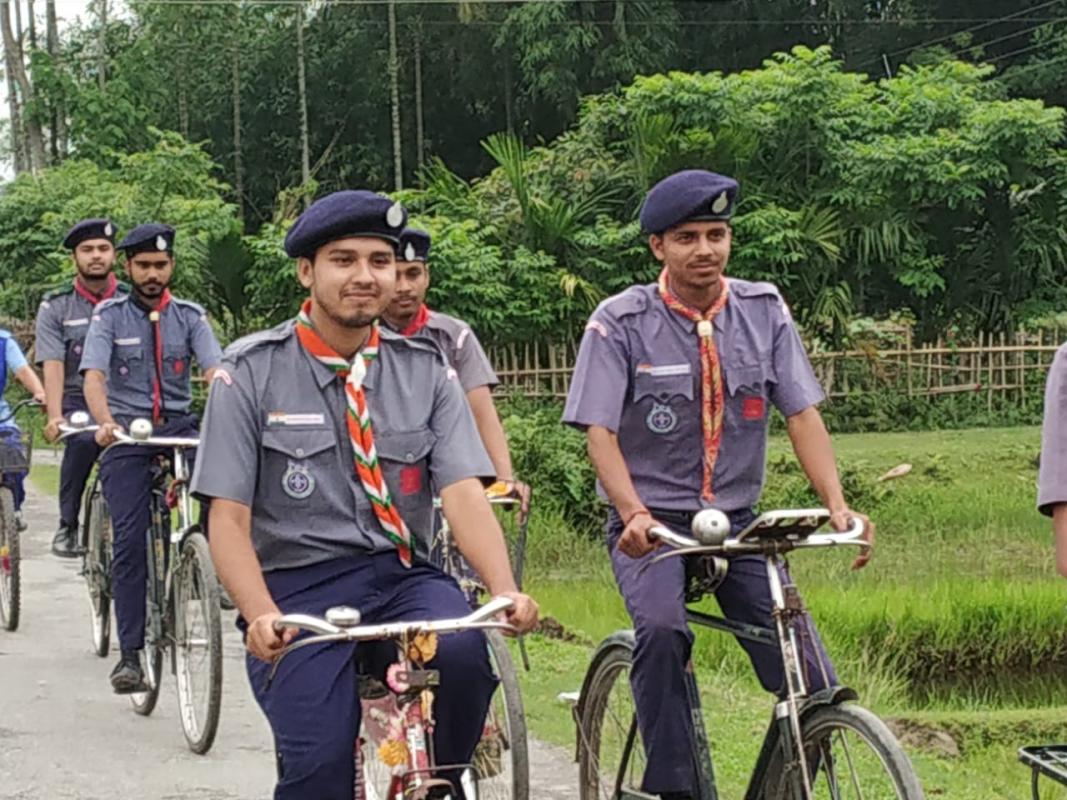 In this day almost 50 numbers of Scouts and Guides , Rovers and Rangers started our cycle rally from divisional scout hut then we went to Nonai river then on the pucca street we reached scout hut which was 10 km almost . When we did go we also mentioned full safety rule like which side we should ride our cycle and how to cross a street and also how to cross a busy crowd
