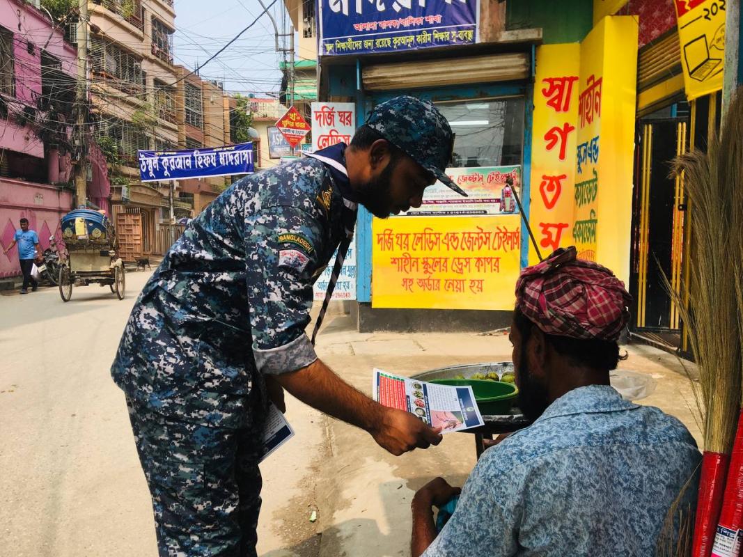 ডেঙ্গু প্রতিরোধে সচেতনতা ও লিফলেট বিতরণ।